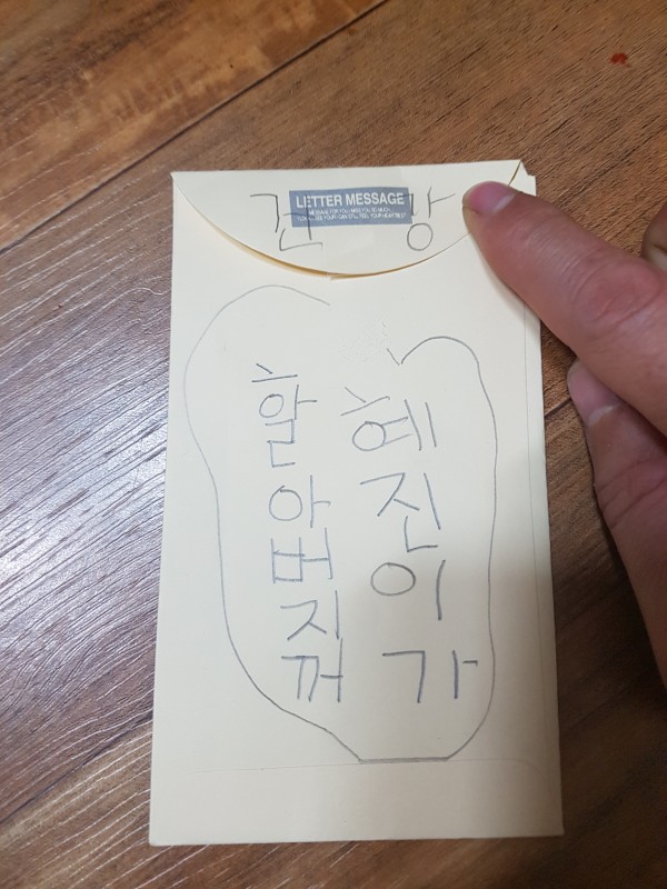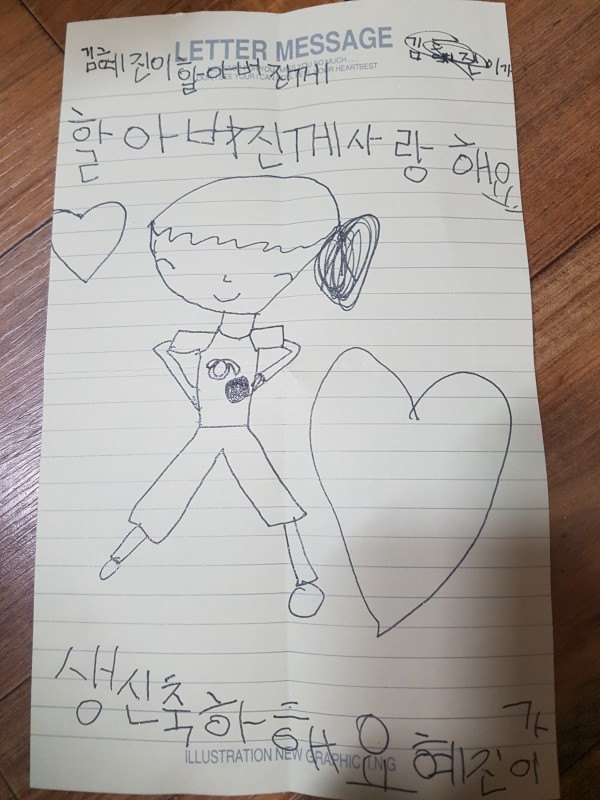 혜진이가 할아버지께 쓴 편지 페이지 정보 넉대 16-11-13 08:53 view3,817 Comment1 관련링크 목록 본문 혜진이가 직접 쓴 편지 혜진이가 할아버지 생신이라고 고사리 같은 손으로 그림을 그려왔네 기특하기도 하고 그림도 제법 잘그리네 할아버지가 그림을 보고 함박웃음을 지으셨다 우리 한나도 저럴때가 있었는데 언제 커서 이제 그림 안그려준다 ㅠㅠㅠㅠ 추천 0 댓글목록 penguin님의 댓글 penguin 16-12-09 17:36 할아버진께ㅋㅋㅋ 할아버진께ㅋㅋㅋ 목록